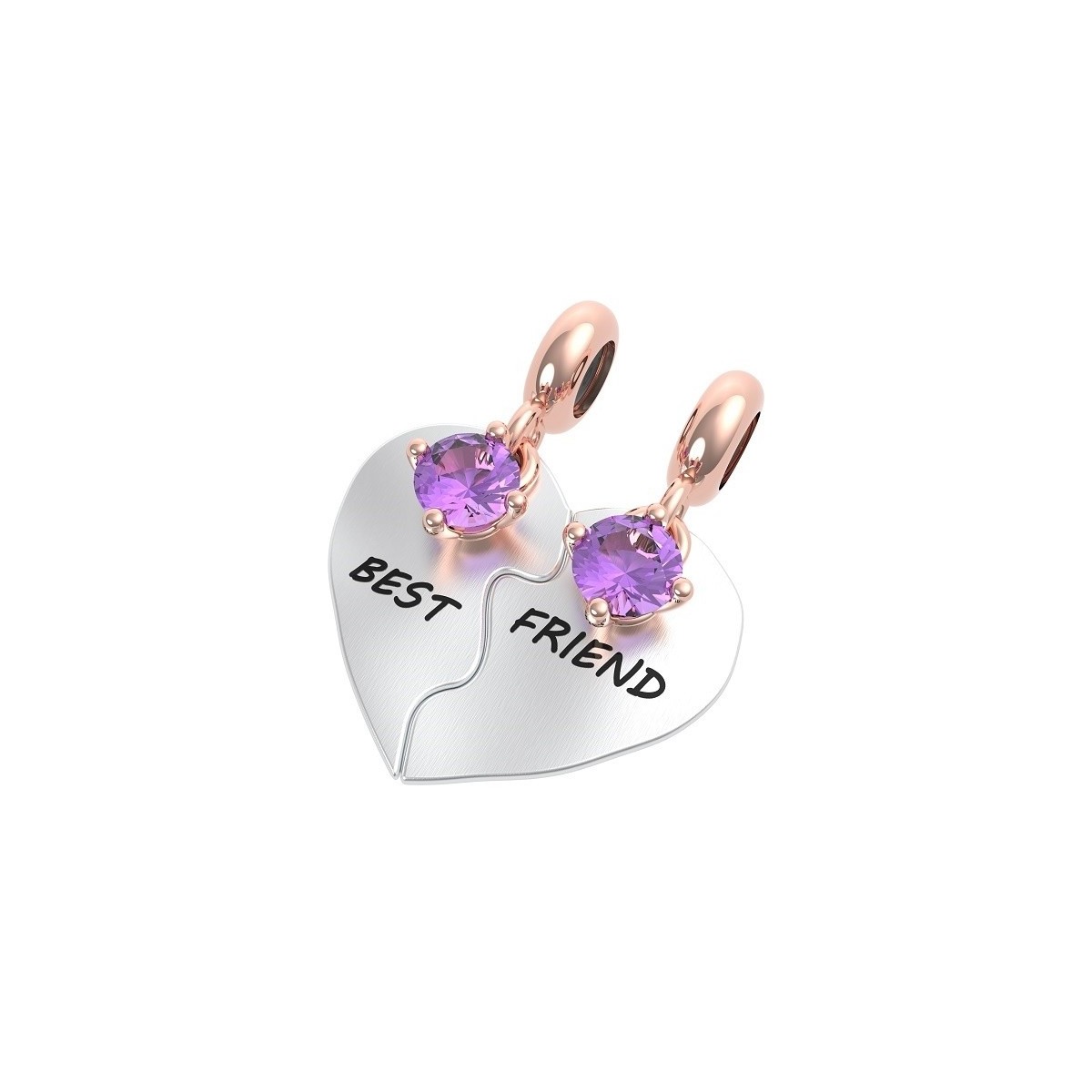 Best-Friend; heart-shaped pendant set 2pcs in 925 silver with rose gold plated ring, compatible for bracelet or necklace, Rerum Gioielli collection