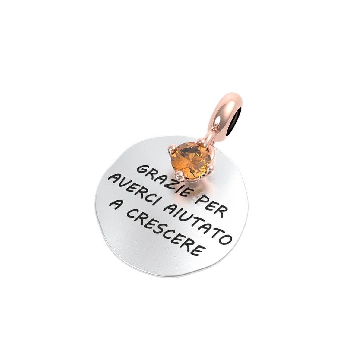 Thanks for helping us grow; coin-shaped pendant in 925 silver with rose gold plated ring, compatible for bracelet or necklace, Rerum Gioielli collection