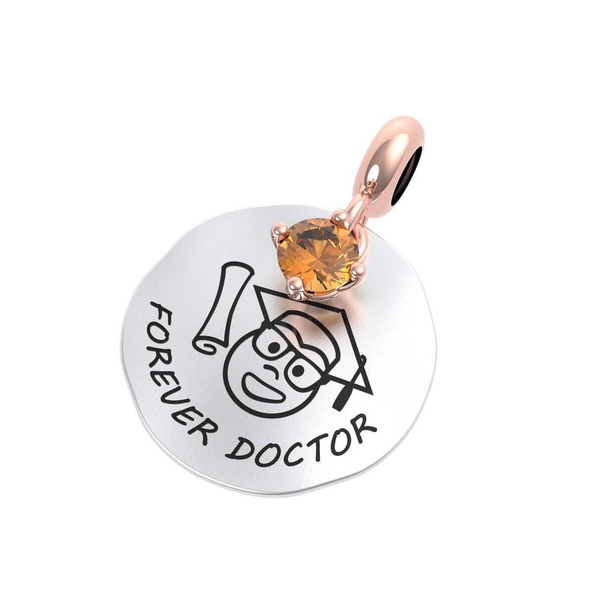 Forever doctor; coin-shaped pendant in 925 silver with rose gold plated ring, compatible for bracelet or necklace, Rerum Gioielli collection