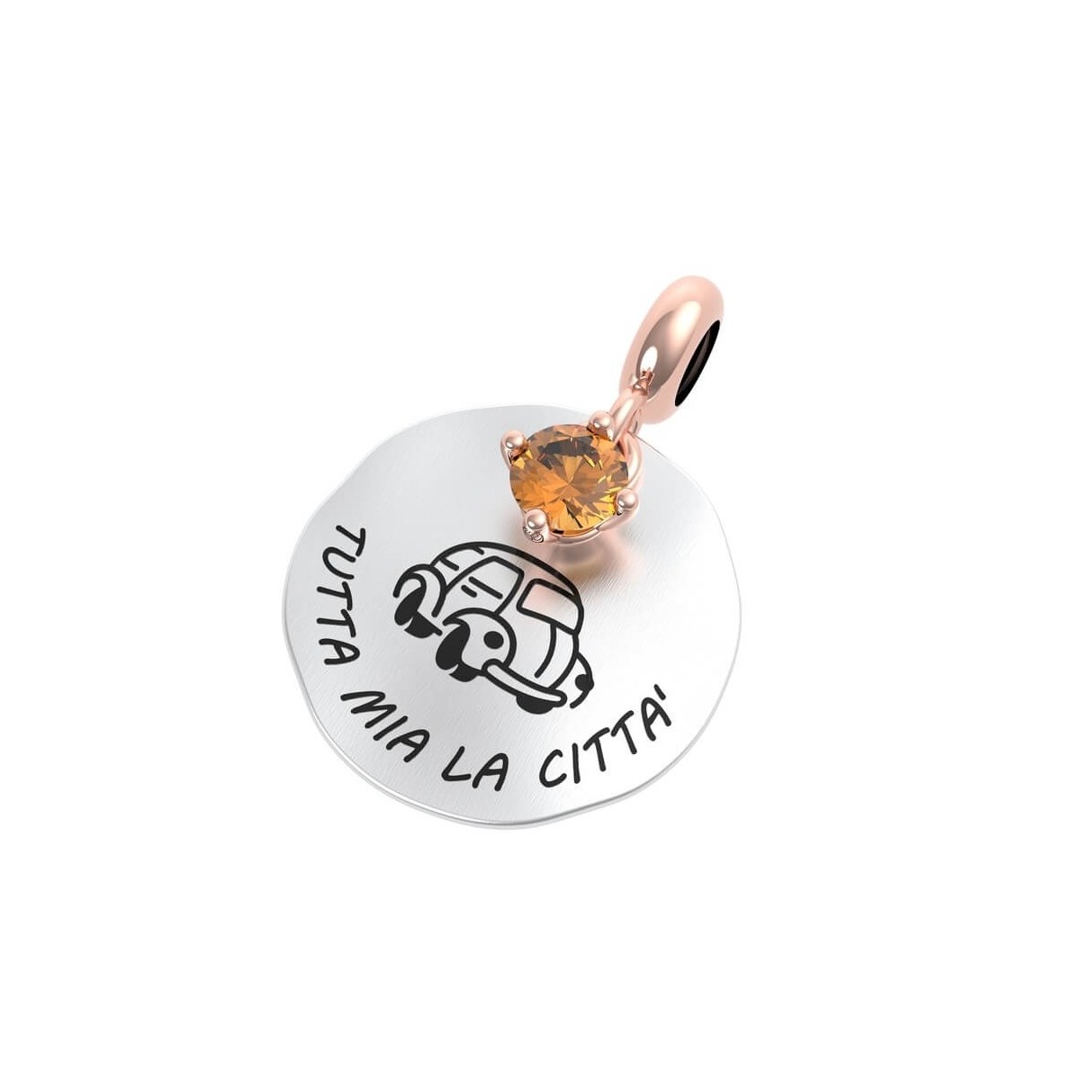 All my city; coin-shaped pendant in 925 silver with rose gold plated ring, compatible for bracelet or necklace, Rerum Gioielli collection