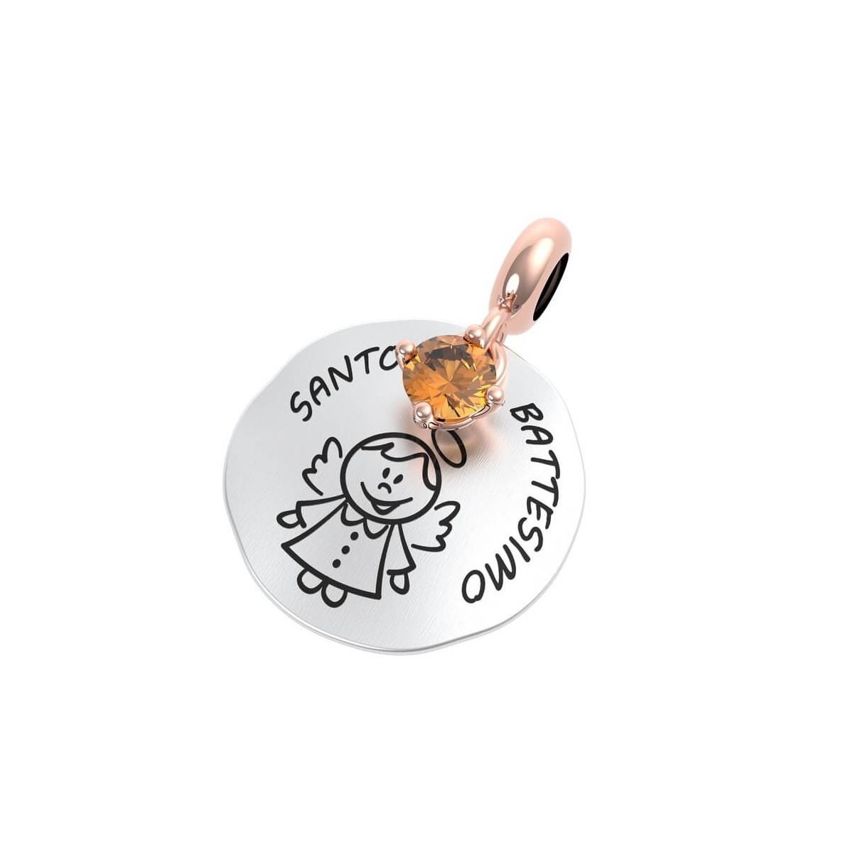 Holy Baptism; coin-shaped pendant in 925 silver with rose gold plated ring, compatible for bracelet or necklace, Rerum Gioielli collection