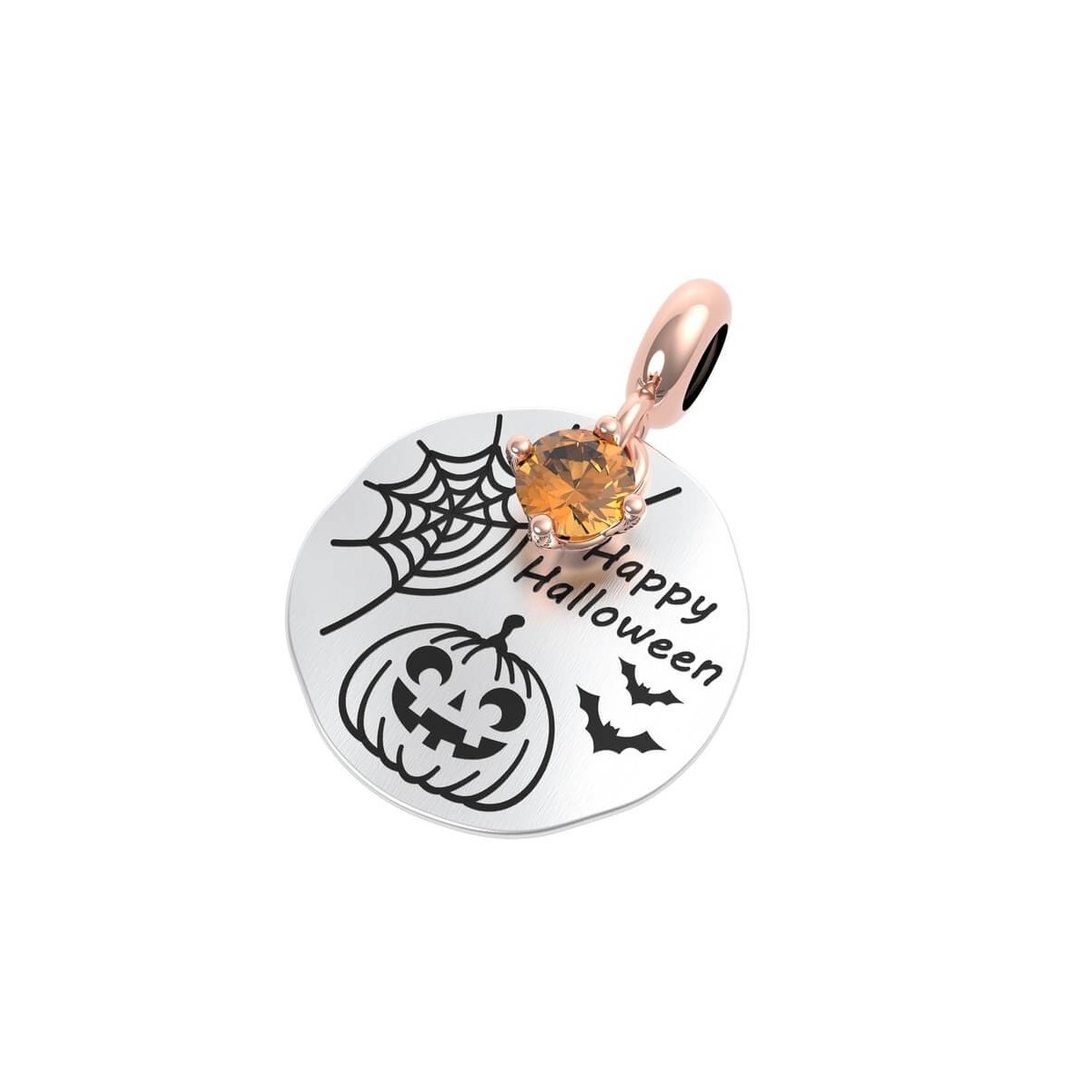 Happy Halloween; coin-shaped pendant in 925 silver with rose gold plated ring, compatible for bracelet or necklace, Rerum Gioielli collection