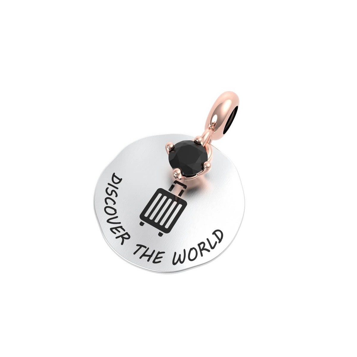 Discover the world; coin-shaped pendant in 925 silver with rose gold plated ring, compatible for bracelet or necklace, Rerum Gioielli collection