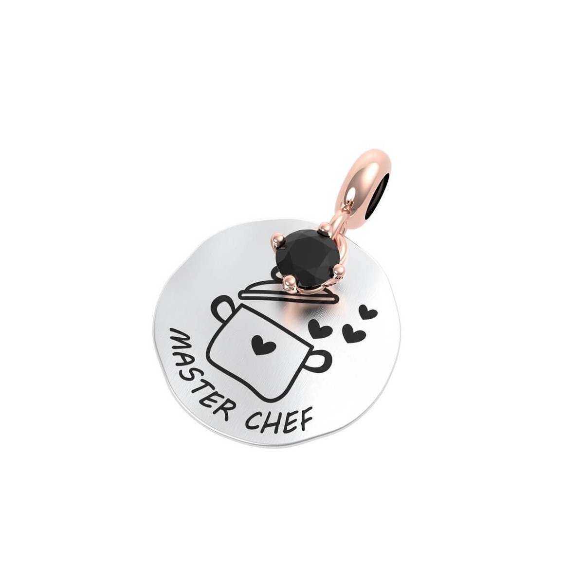 Master chef; coin-shaped pendant in 925 silver with rose gold plated ring, compatible for bracelet or necklace, Rerum Gioielli collection