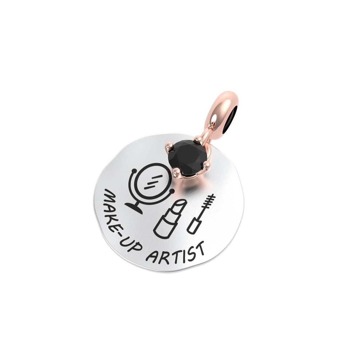 Make-up artist; coin-shaped pendant in 925 silver with rose gold plated ring, compatible for bracelet or necklace, Rerum Gioielli collection