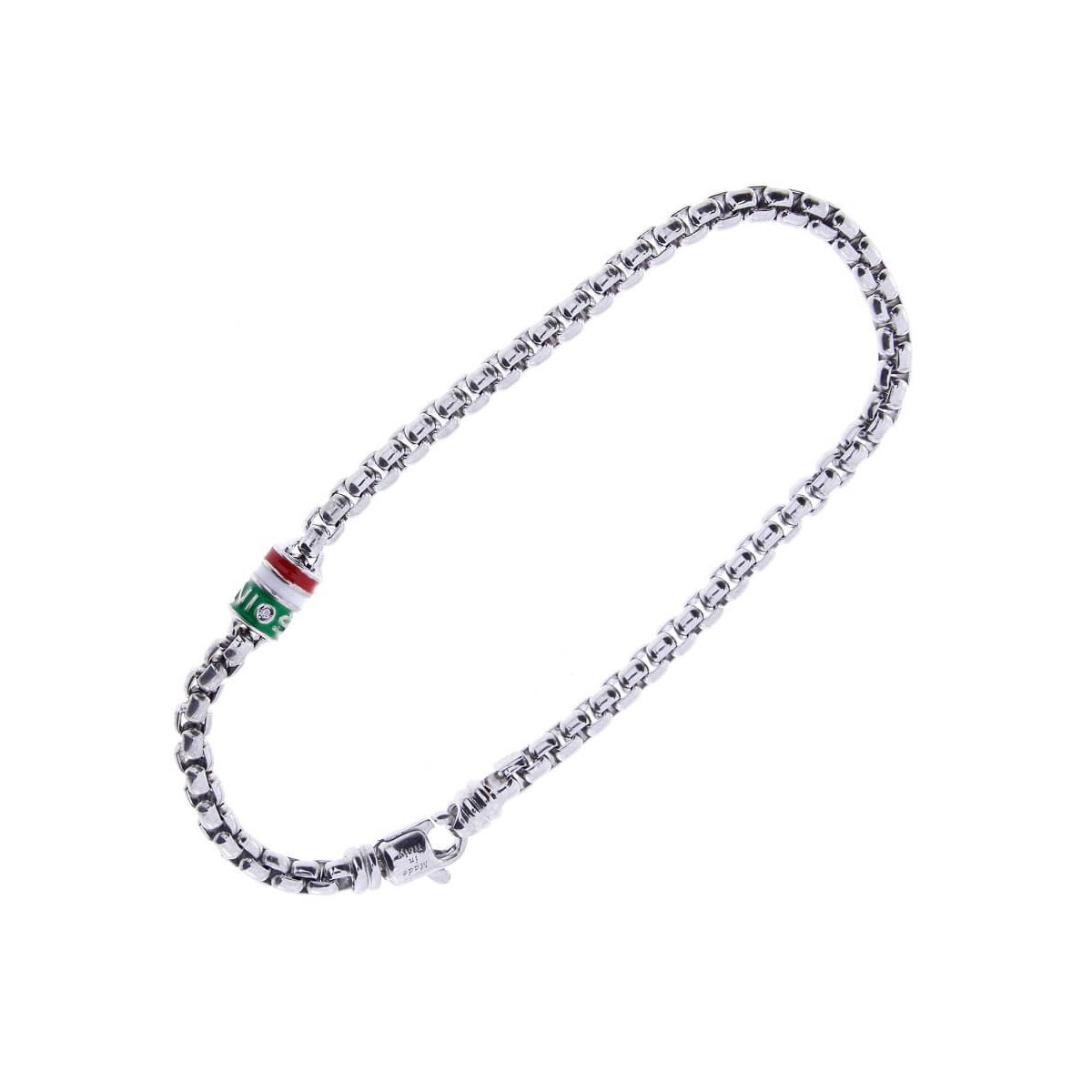Men's chain bracelet, Funky line, made in 925 silver, with the Italian flag and a small 0.01 carat diamond. Lobster clasp