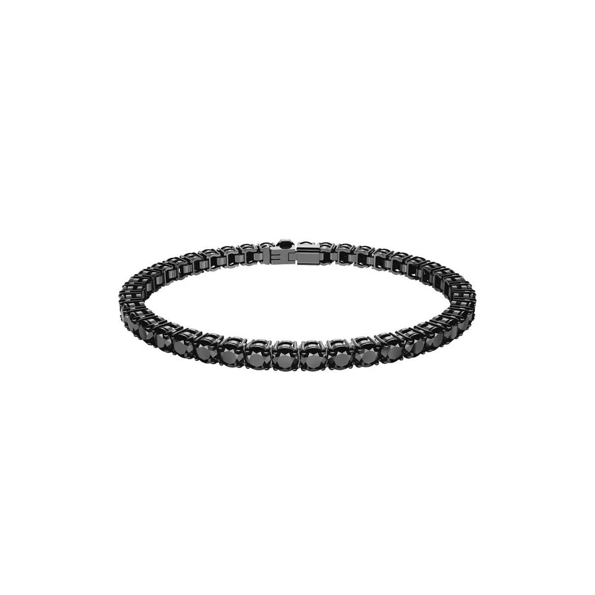 Swarovski unisex bracelet, from the Matrix collection, made of alloy with a row of black Crystal Clear set in claws in an elegant ruthenium plating. Cassette closure with logo and length 18 cm.