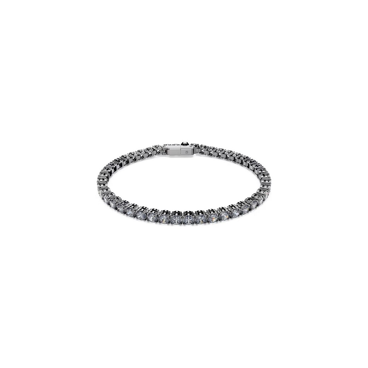 Tennis bracelet, from the Matrix collection, for women Swarovski, enhances the interaction between geometry and light. The bracelet is made with ruthenium plating and features a crown of gray-silver Swarovski Zirconia and a silver matrix closure.