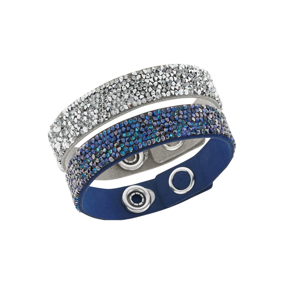 This set includes two irresistible wrap bracelets. They glitter with Crystal Rock on deep blue and gray Alcantara respectively. The adjustable closure consists of two snap buttons. Perfect for mixing and matching with other bracelets!