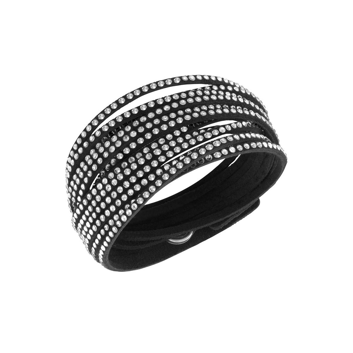 The Slake bracelet blends easily with your outfit. The Clear Crystal contrast with the black Microfiber for a jewel that sinuously wraps the wrist, if you define a multi-layered style. Closing consists of two clasps embellished with Crystal Clear that allow you to adjust the length (36/38 cm).