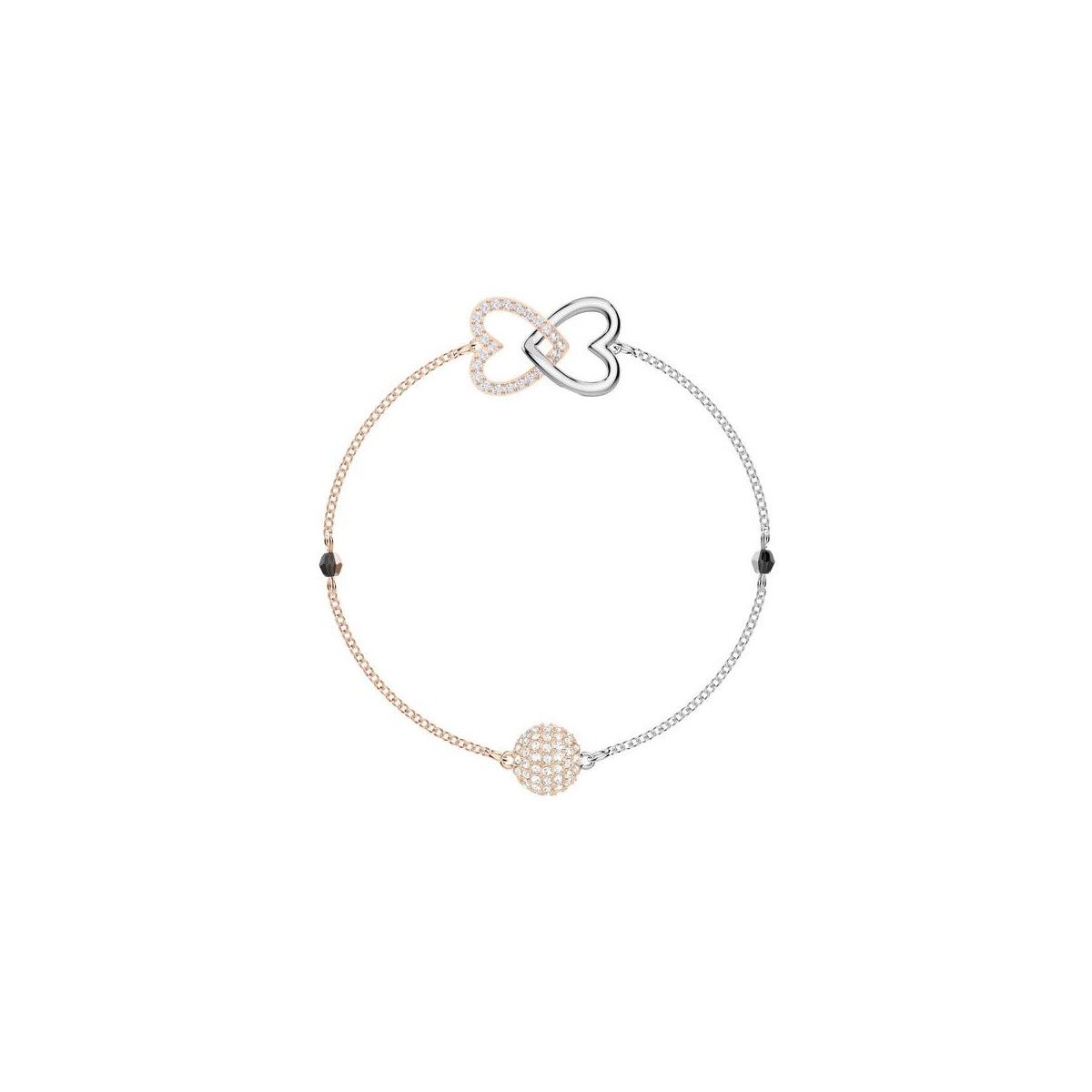 Women's fine chain bracelet with central double braided heart shape and magnetic closure with crystal pavé, mixed rose gold plated