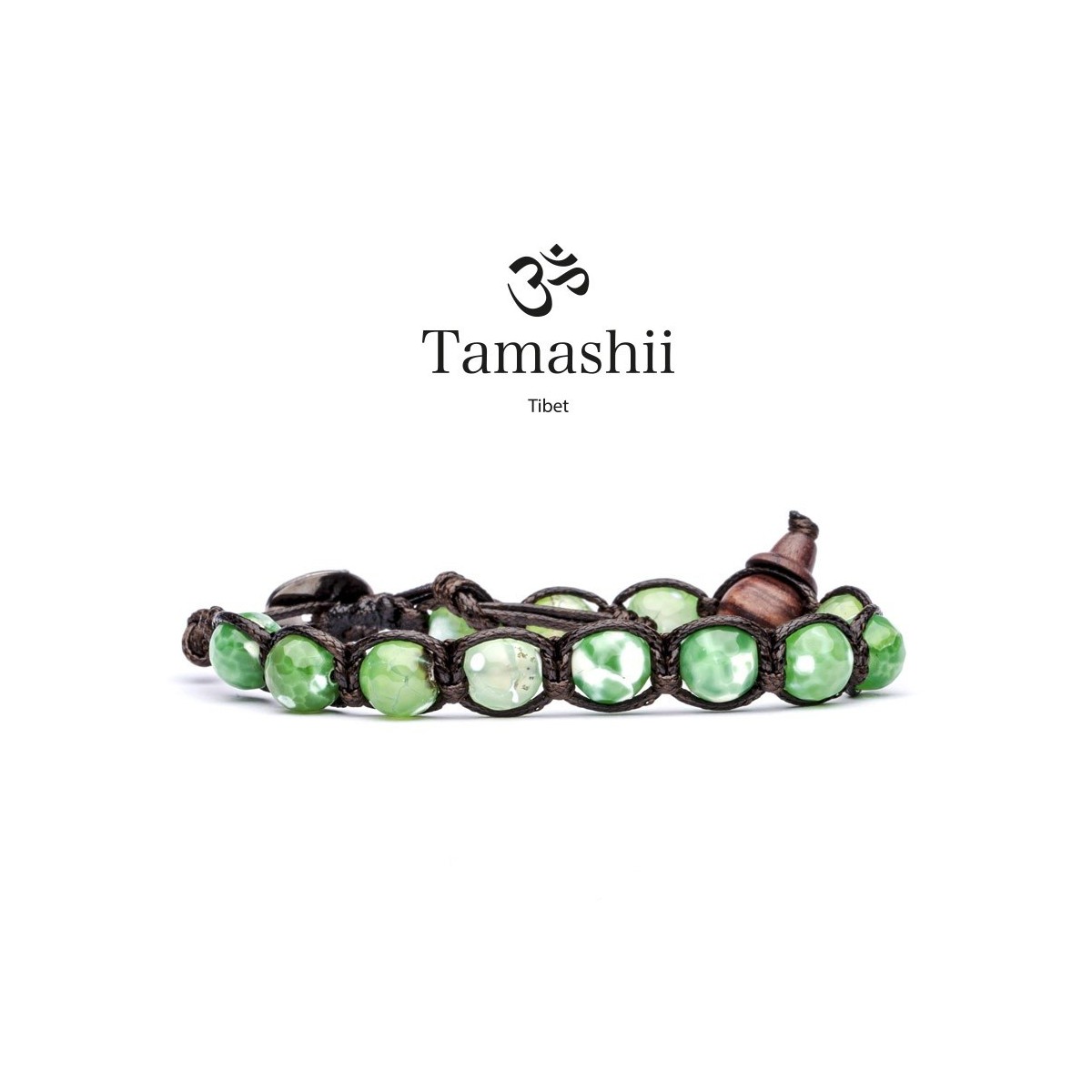 Bracelet with natural stone green agate color green with white shades and rope, Tibetan talisman Original Unisex and one size