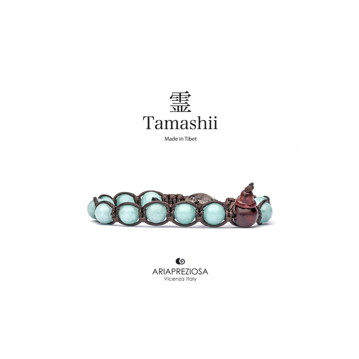 Bracelet with natural stones in shades of light blue striated and rope, with addition of wooden component, original tibetan talisman unisex tg unique adjustable in different sizes.