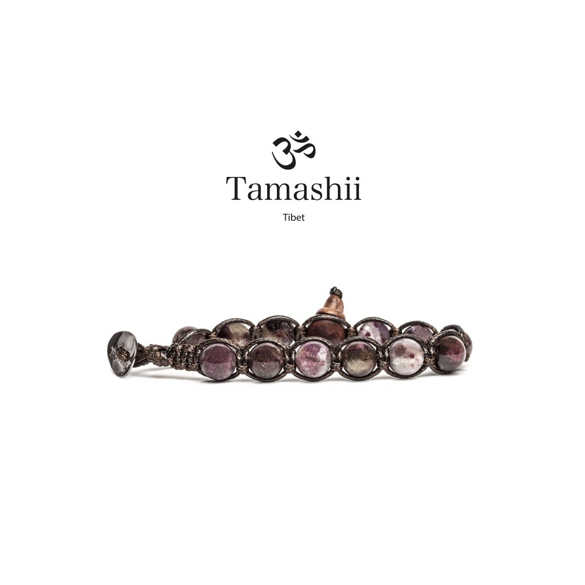 Bracelet with natural stones in shades of reddish streaked violet and rope, with addition of wooden component, original tibetan talisman unisex tg unique adjustable in different sizes.