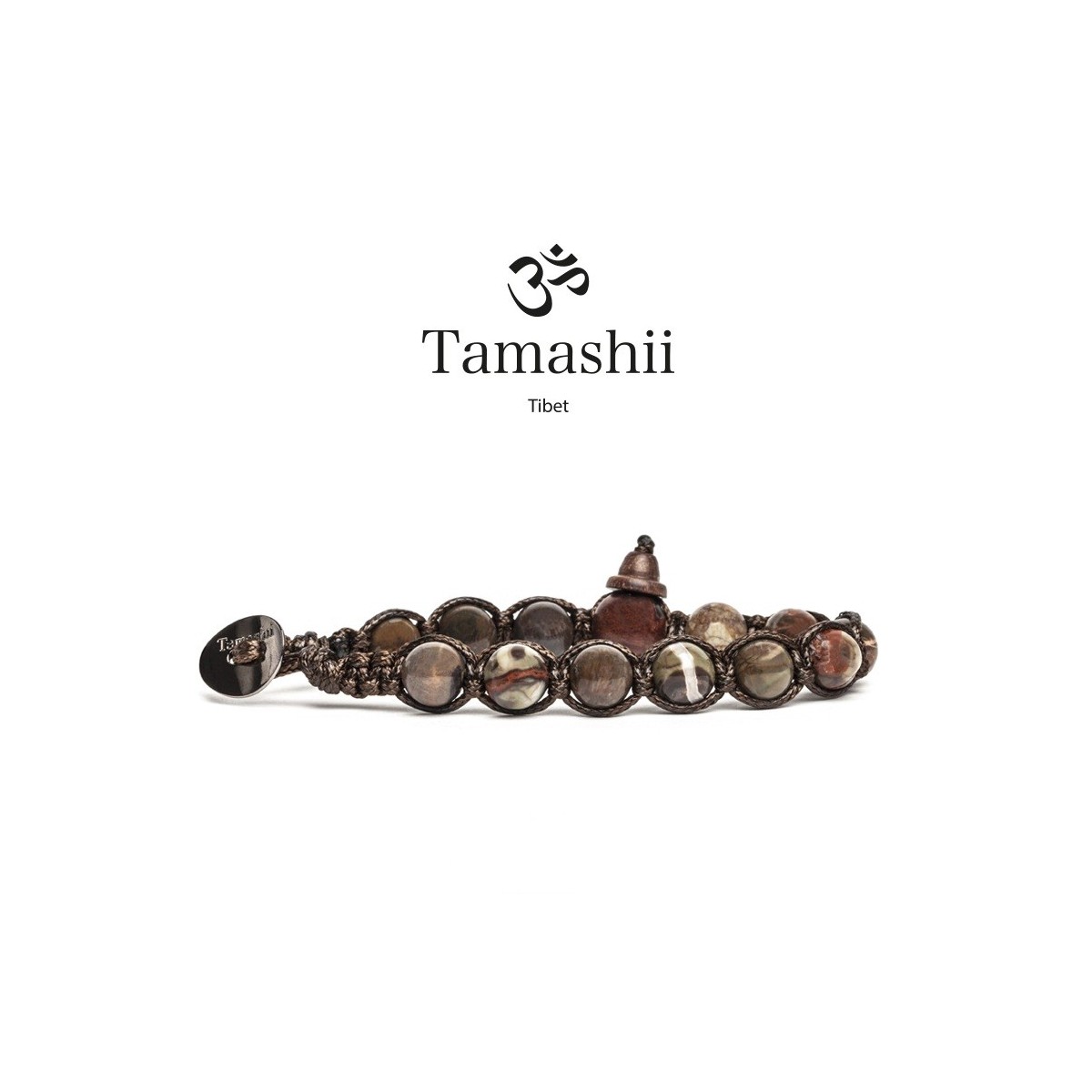 Unisex one-piece bracelet (one size fits all wrist diameters) composed of green jasper stones joined by a waxed cotton cord. Jasper is a semiprecious stone considered to be protective against dangers; in the green color it gives calm and serenity and infuses thoughts and positively positive.
