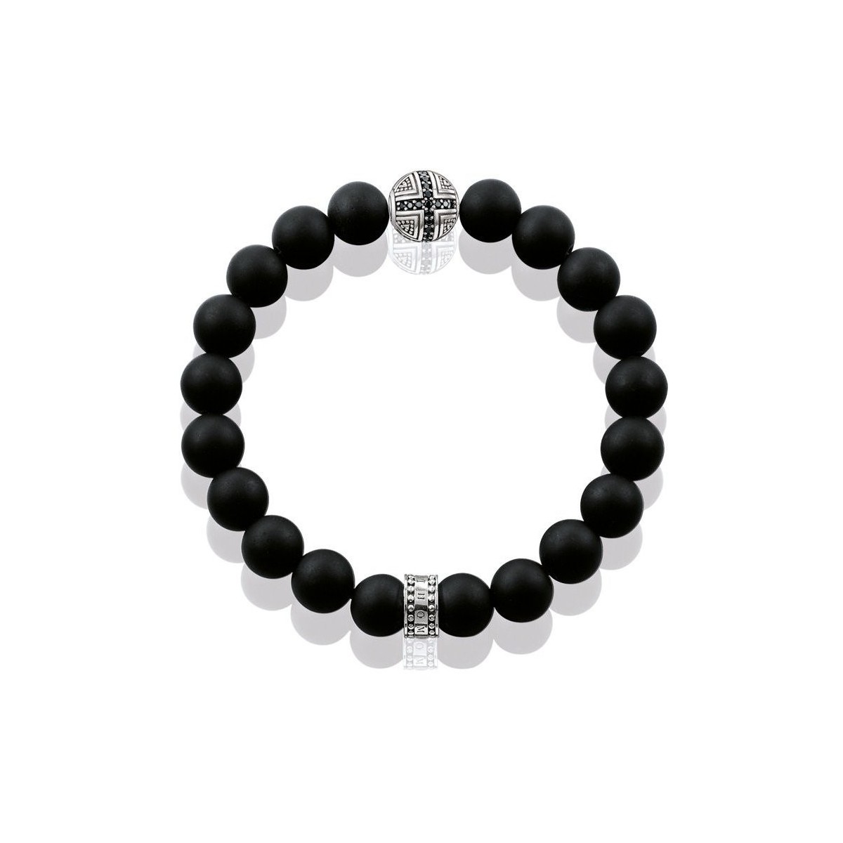 Rebel at Heart line bracelet made from black Obsidian satin balls and a cross of synthetic cubic zirconia 925 Silver Black embellishes a bowl