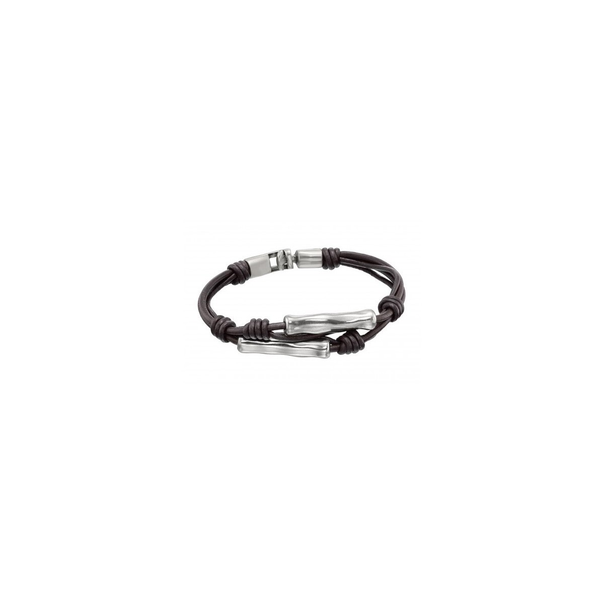 Men's bracelet with leather laces and tubes/silver metal buckle; UNO de 50, 100% hand crafted and made in Spain.