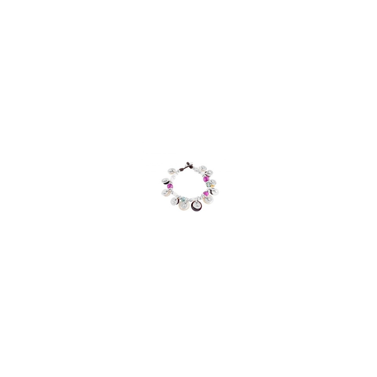 Leather Bracelet mother of Pearl pendants, glass and metal. Handmade in Spain-PUL1553MCLMTL0M