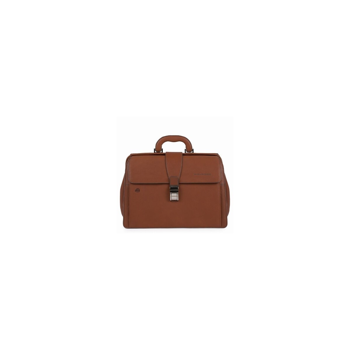 Piquadro Ipad doctor briefcase, from the Black Square collection, made of genuine tan leather with additional pockets for objects and metal closure