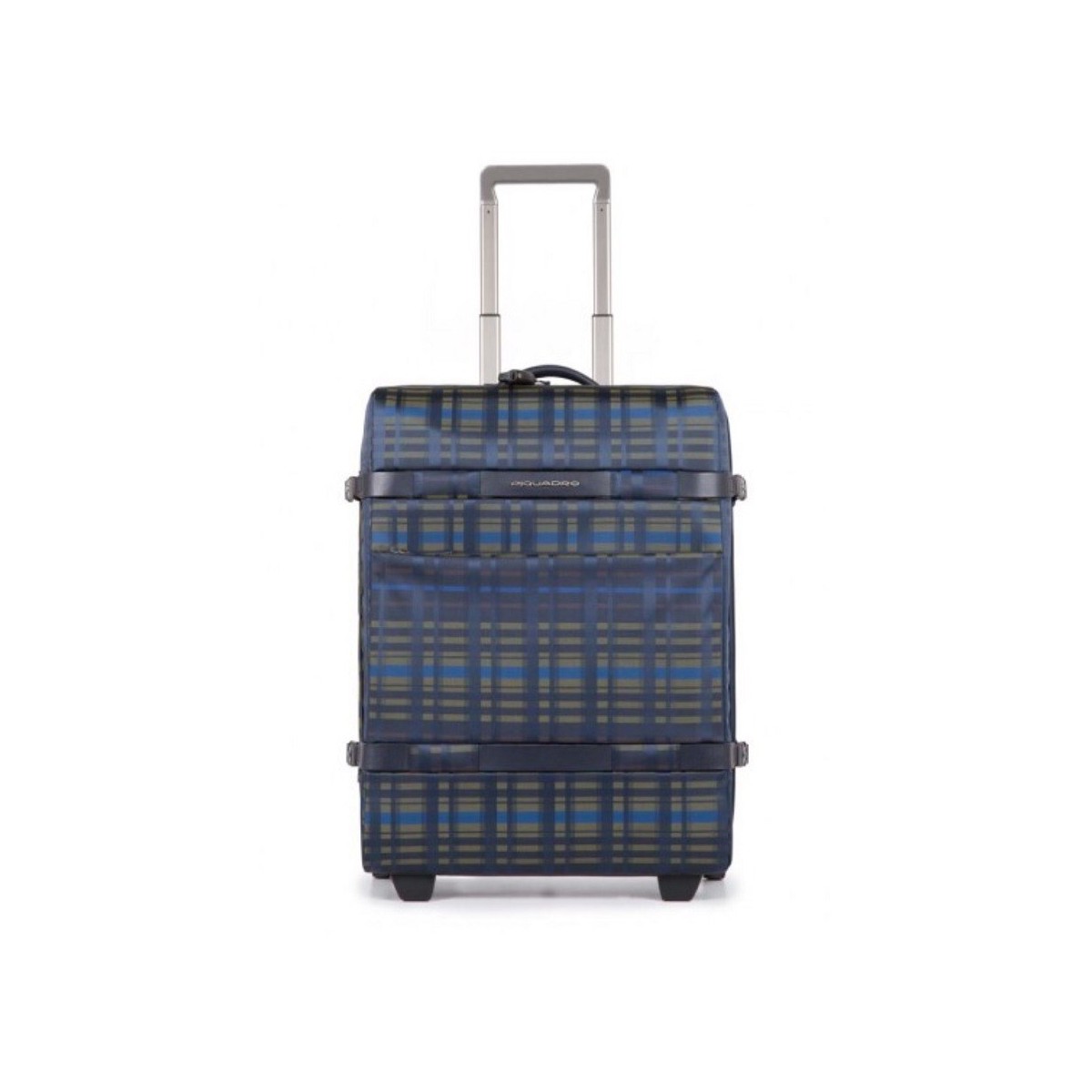 Cabin size trolley slim line Move 2 in fabric and leather with CONNEQU smartphone connection system and TSA, Scottish Blue color