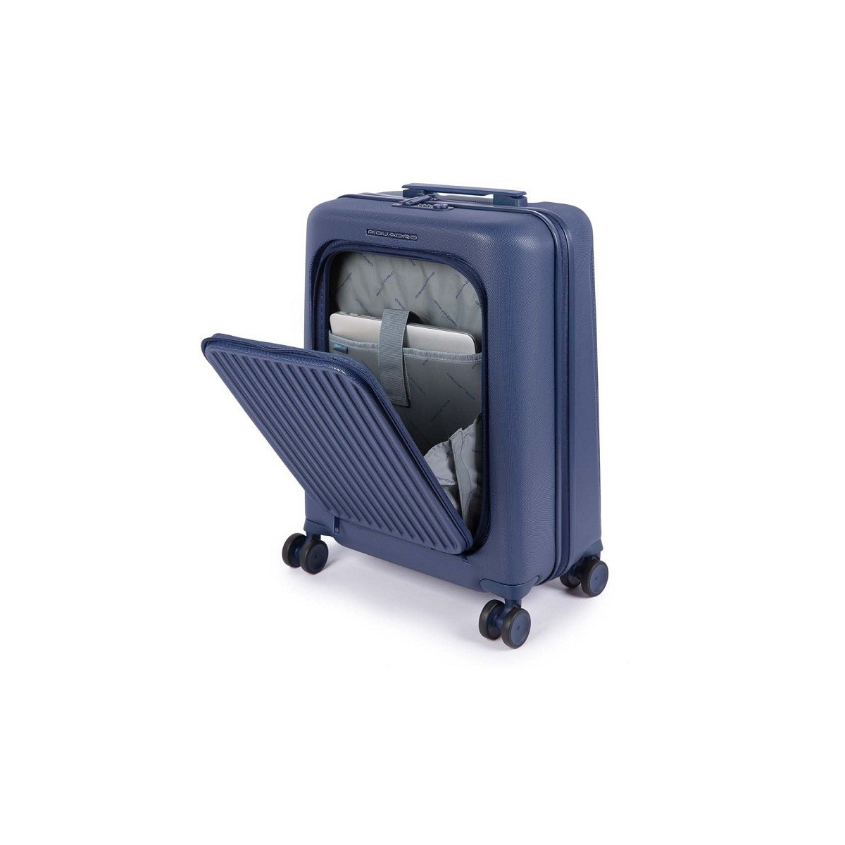 Trolley collection Seeker in anti-scratch polycarbonate blue color with four wheels and PC pocket.