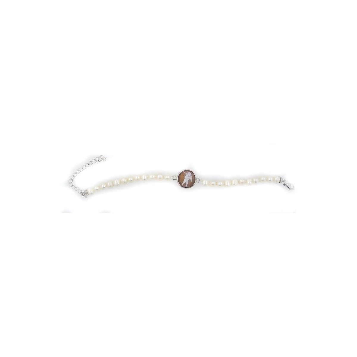 Pearls and silver 925 rhodium black bracelet with central Cameo Angel and adjustable closure carabiner, handmade Collection Ballet - B3P-ANGEL