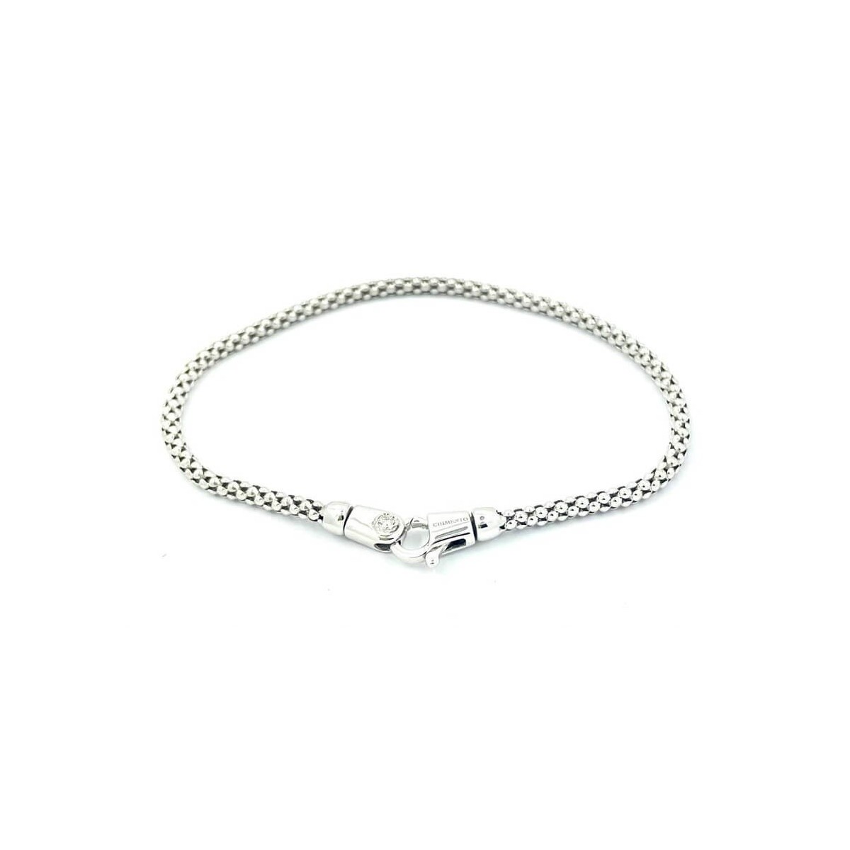 Small grains of rice bracelet made of 18kt white gold with 0.03 carat natural diamond on the terminal. Lobster clasp
