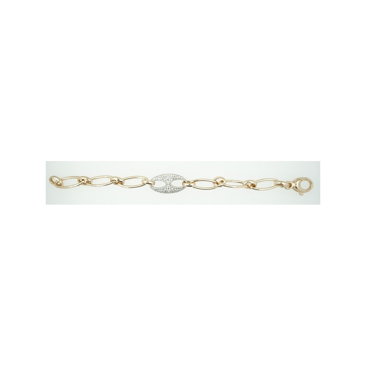 Rose gold plated 925 Silver chain bracelet and insert with pave cubic zirconia; snap closure