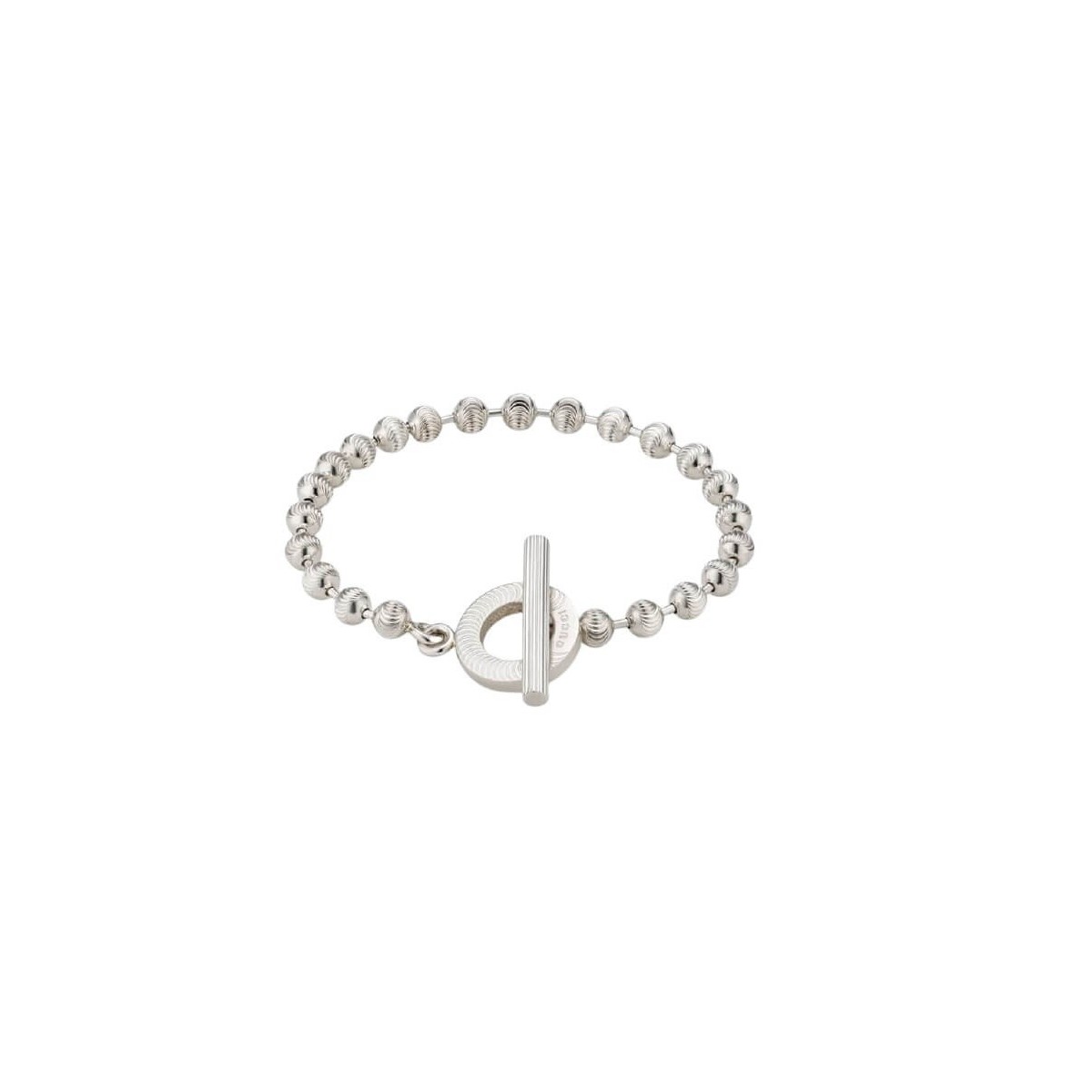 Female chain bracelet from the 2020 collection with spheres engraved with waves and a frog closure bearing the name of the Maison Gucci, all in 925 silver.