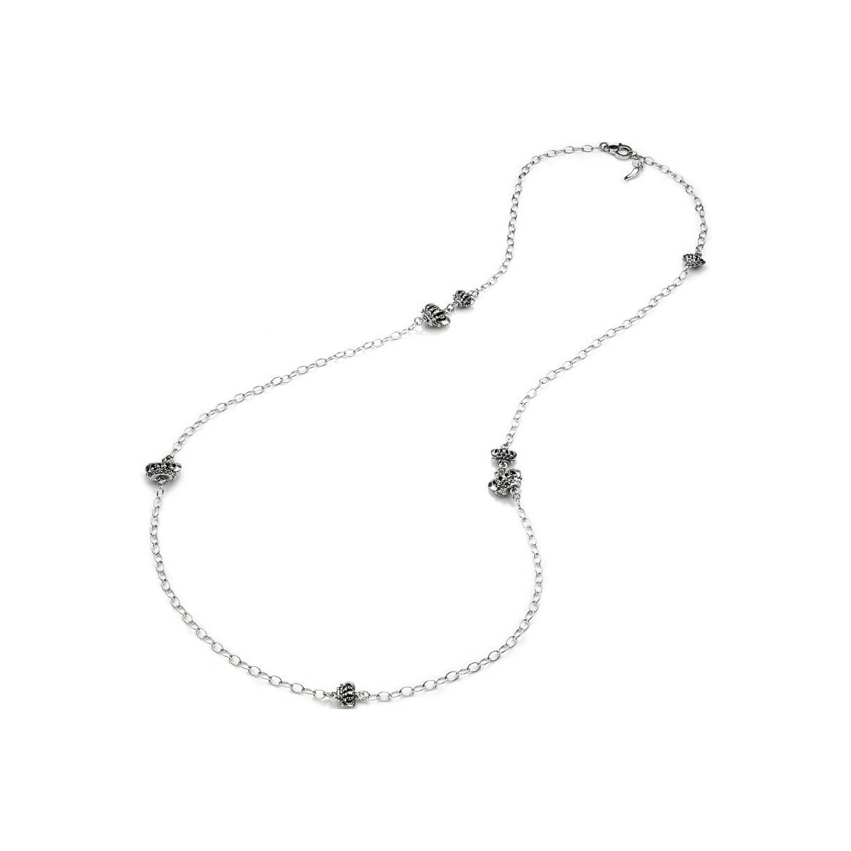 Long women's necklace Corone collection made of 925 silver with chain and crowns. Lobster clasp closure. Length 120 cm
