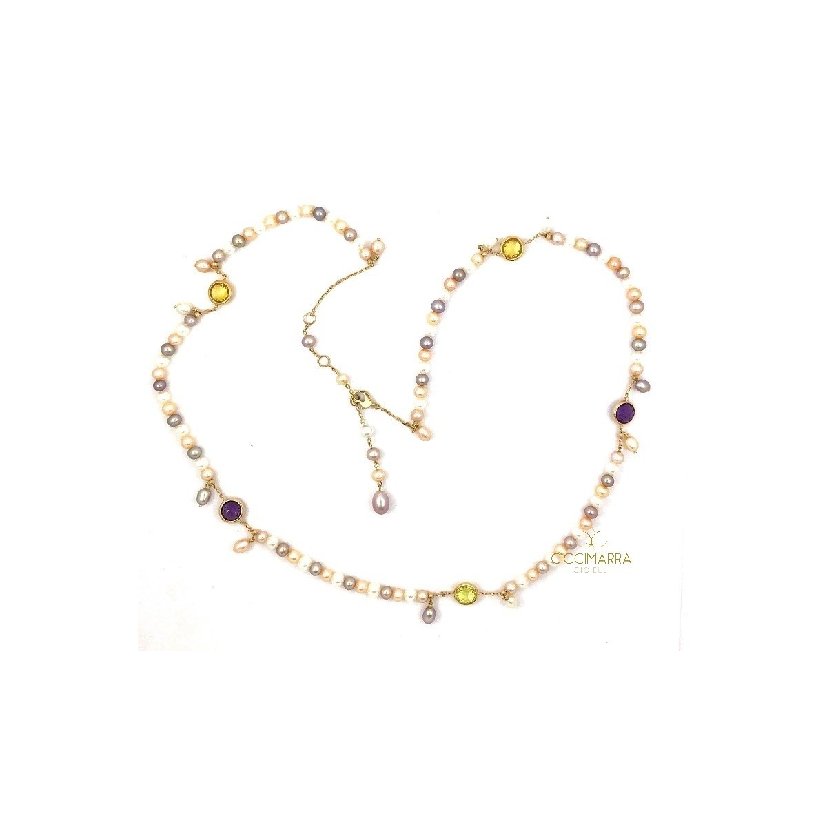 Happy collection necklace in 18 kt pink gold, multicolor cultured pearls, amethyst, citrine and lemon quartz; - length 60 cm - reference: CLM333R4X Mimi, a brand of contemporary jewelry with a seductive design. The new 2018/2019 collections are available in the store and online