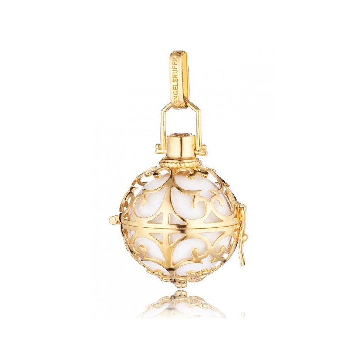 Silver 925 pendant large Bola Golden with white enamelled crystal ball containing/Tinkerbell. -ER-01-GM