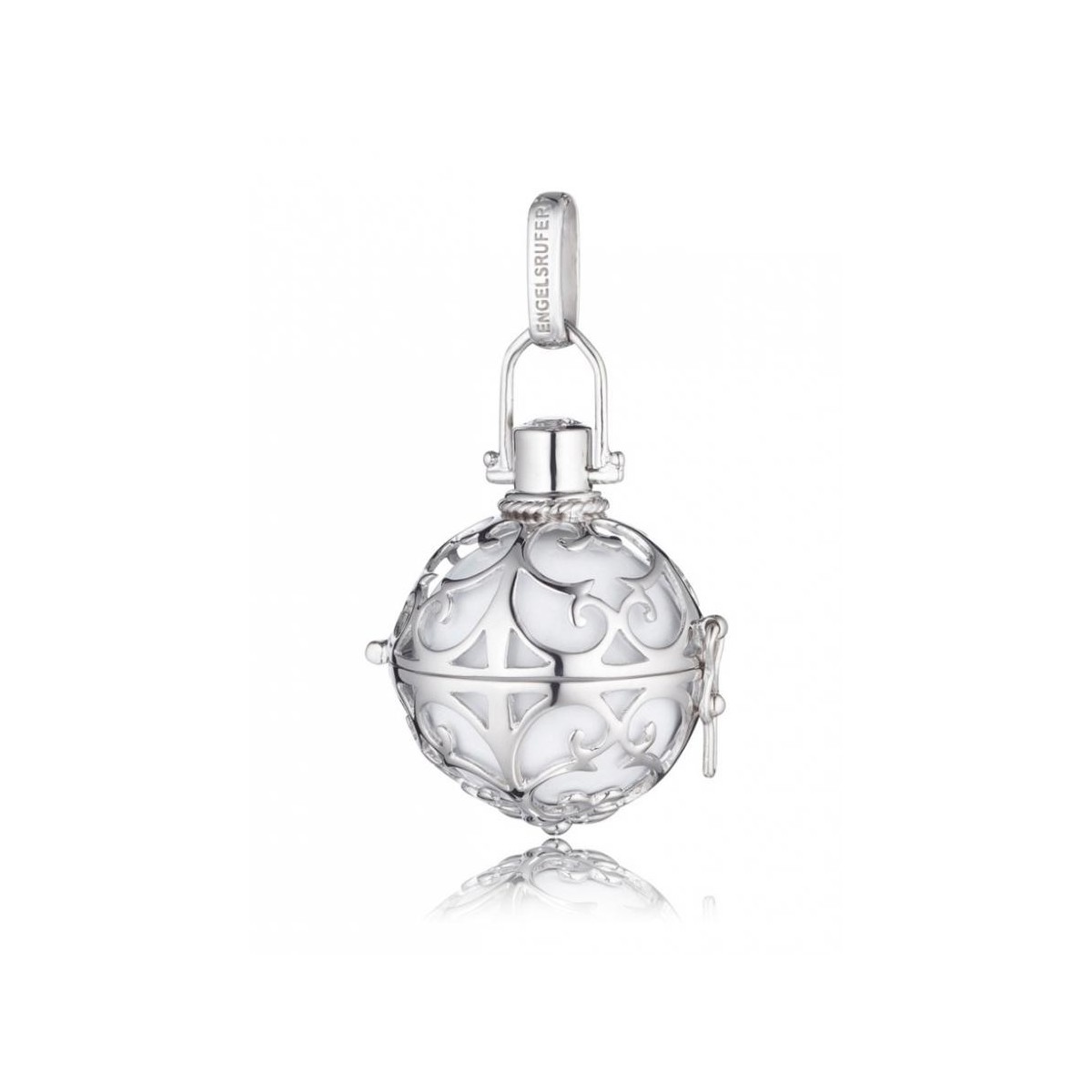 925 Silver rhodium-plated pendant with Crystal Bola medium containing ball/white enamelled Tinkerbell.