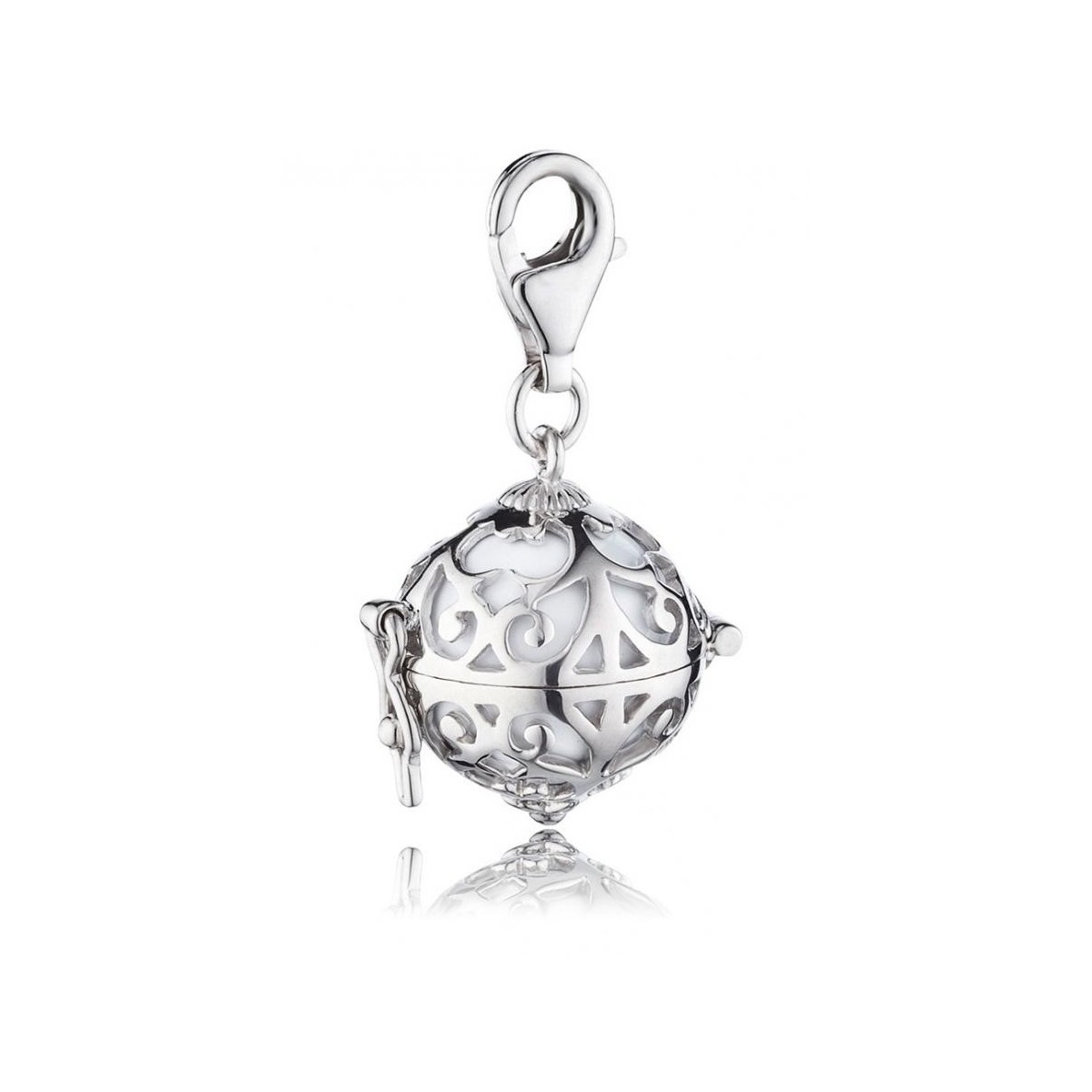 925 Silver rhodium-plated pendant mini Bola containing ball/white enamelled Tinkerbell