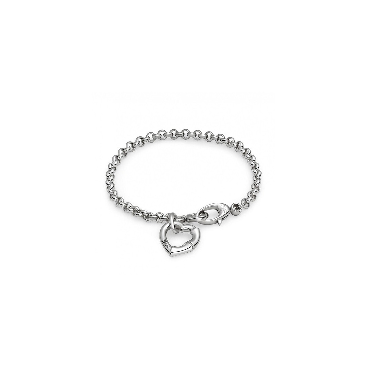 Bracelet heart motif pendant with logo Gucci in rhodium silver 925 and a clasp fastening