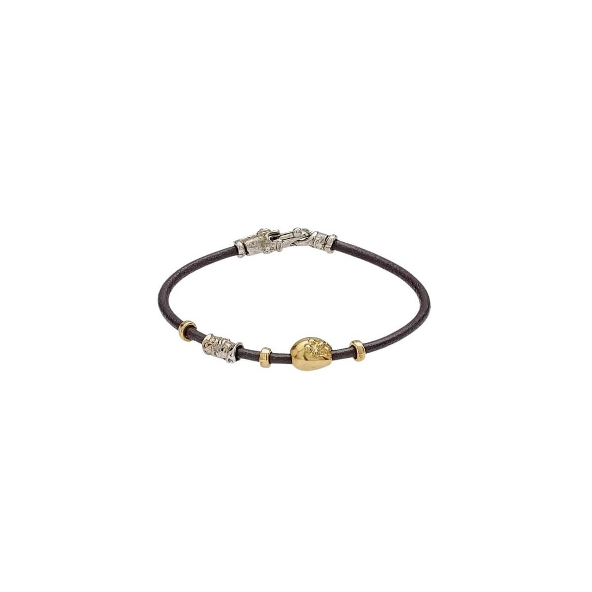 Aurora collection men's and women's bracelet with 3 mm Tuscan leather thread, lobster clasp and hand-crafted elements in 18 kt gold and silver