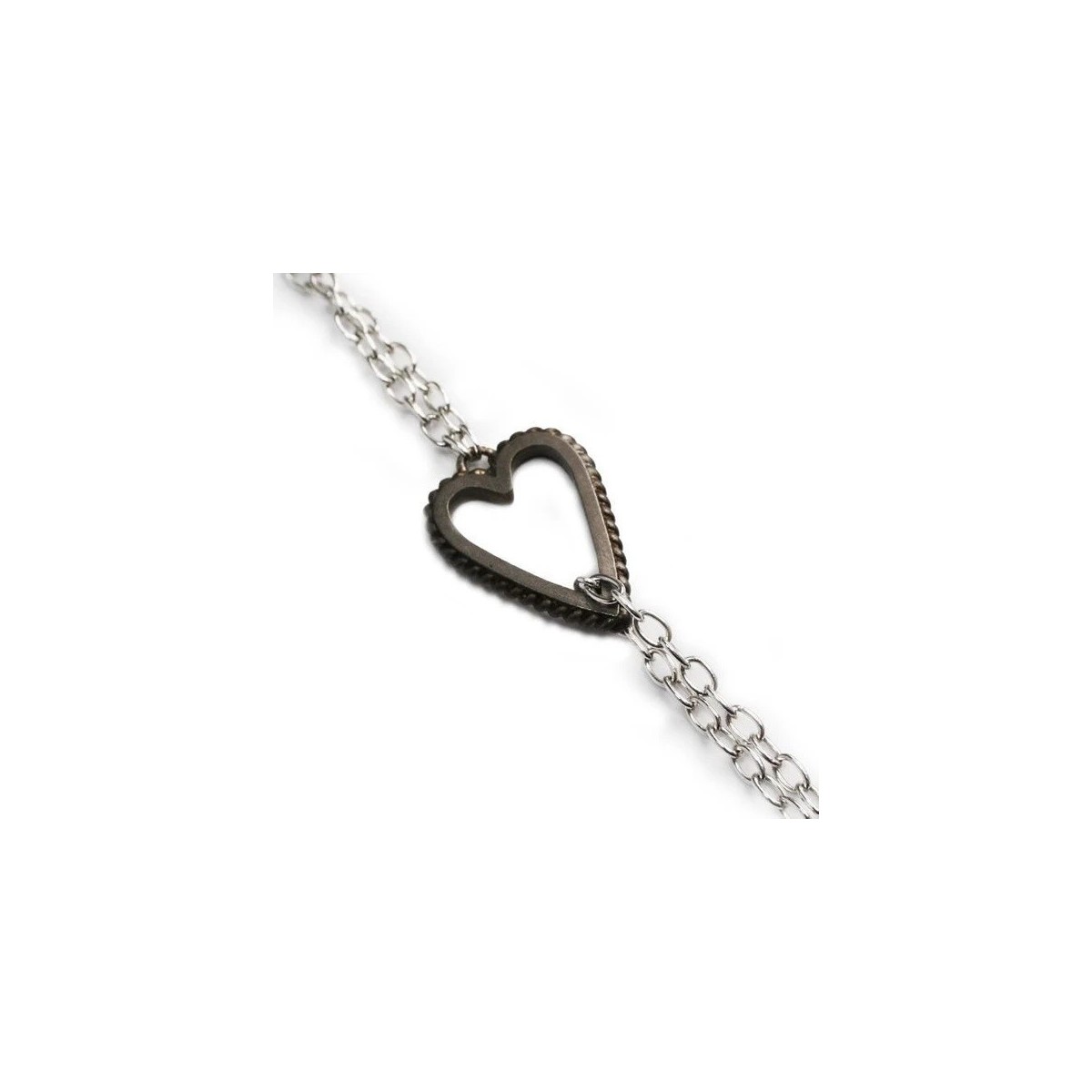 Bracelet with hollow central heart in burnished silver from the Give Love Collection, this collection comes from a heart and the desire to give unconditional love.
