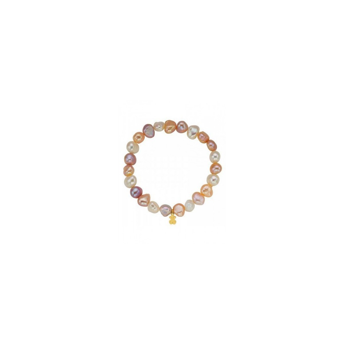 Elastic bracelet with baroque pearls multicolor and teddy bear pendant in gold 18kt