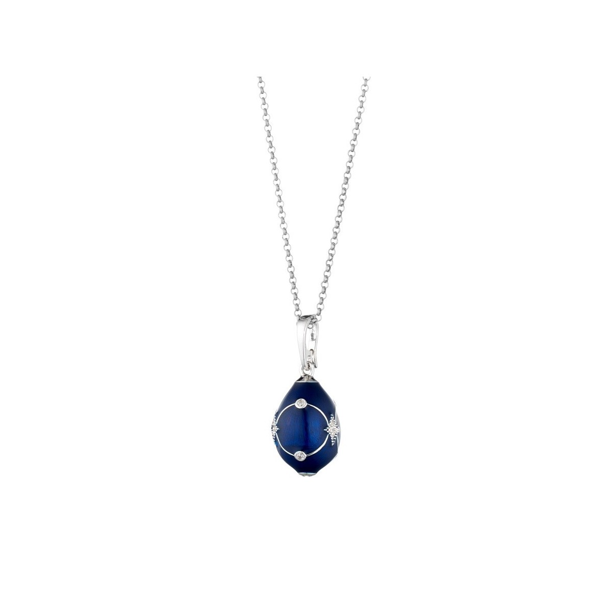 Small egg pendant with necklace from Anastasija collection rhodium 925 silver, blue enamel with white ceramic circular zircons.