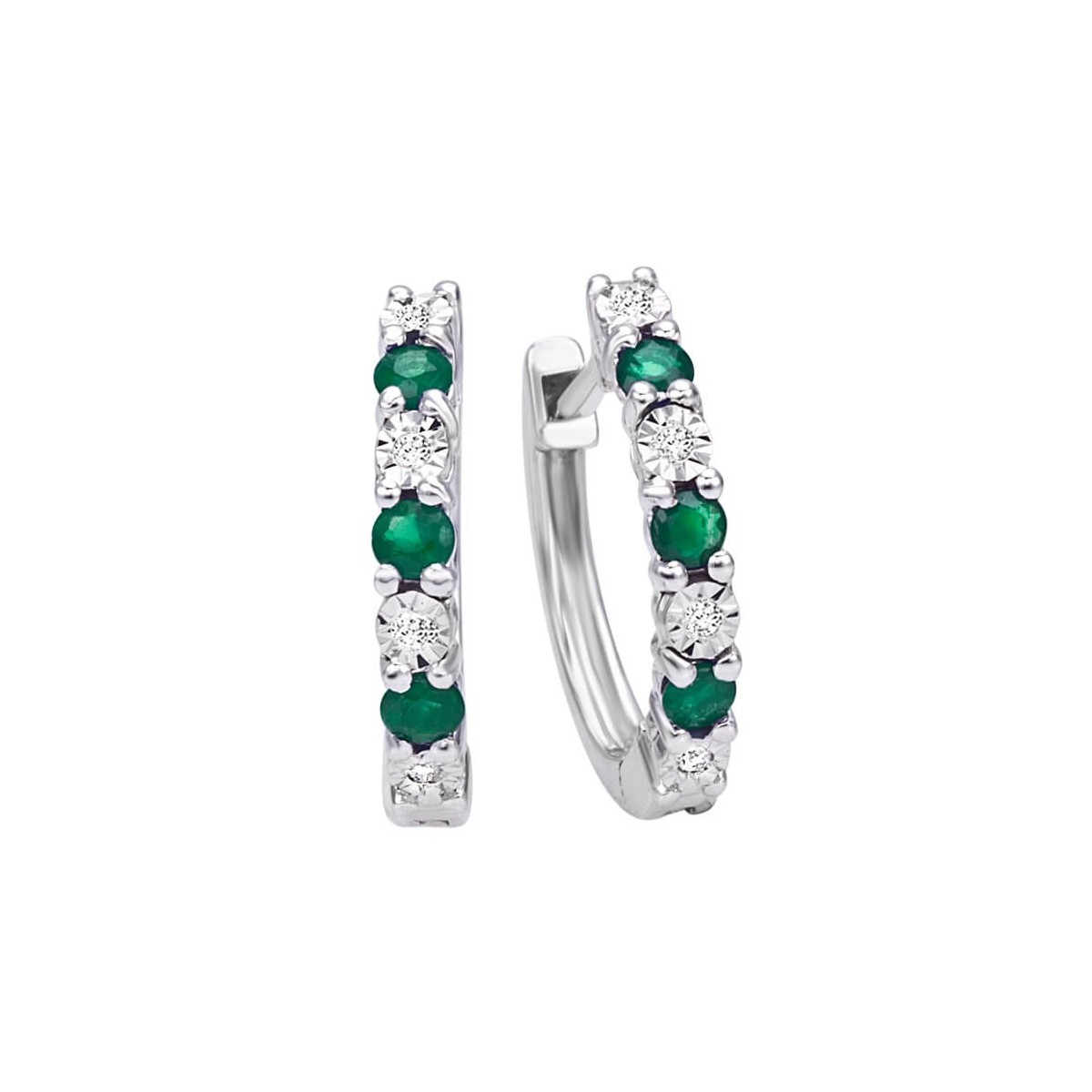 Bliss women's hoop earrings from the Jasmine collection made in 18k white gold with 3 natural emeralds per earring for a total of 6 emeralds with a total carat weight of 0.3c carats, all embellished with 8 brilliant cut natural diamonds (4 per earring) with a carat weight total of 0.03 carats.