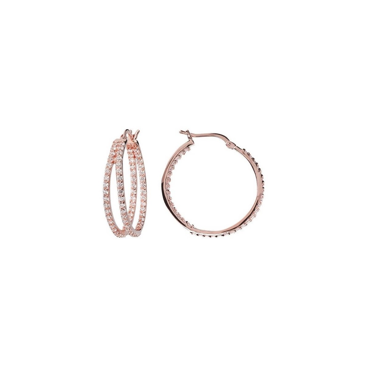 Bronzallure earrings made of 18kt rose gold plated with cherchio with precious white zircons Bronzallure jewels allow you to best express your cool and trendy style, your own style based on different situations and outfits.