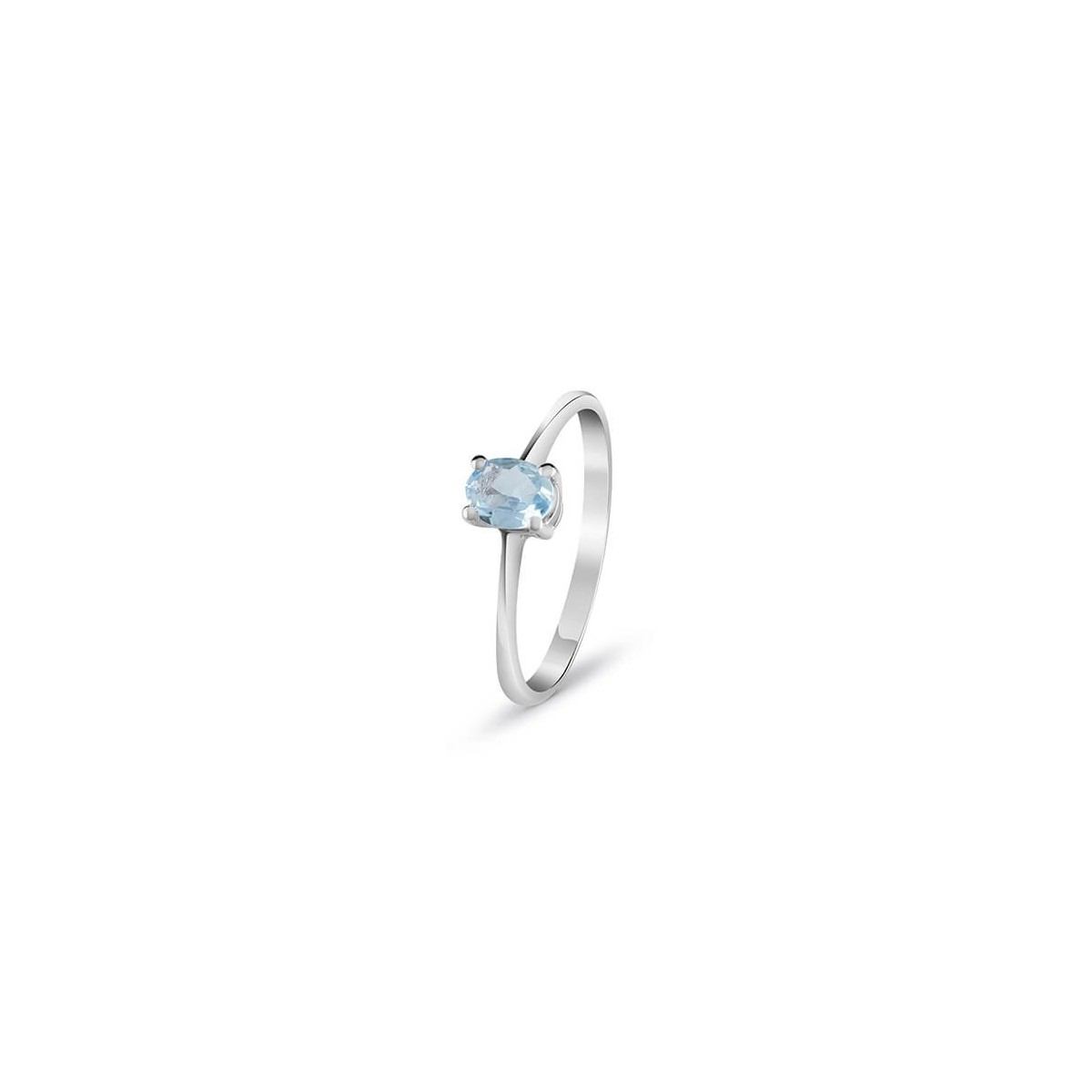 Bliss ring for women, from the Stephanie collection, made of 18k white gold and 0.26 carat oval cut natural aquamarine.