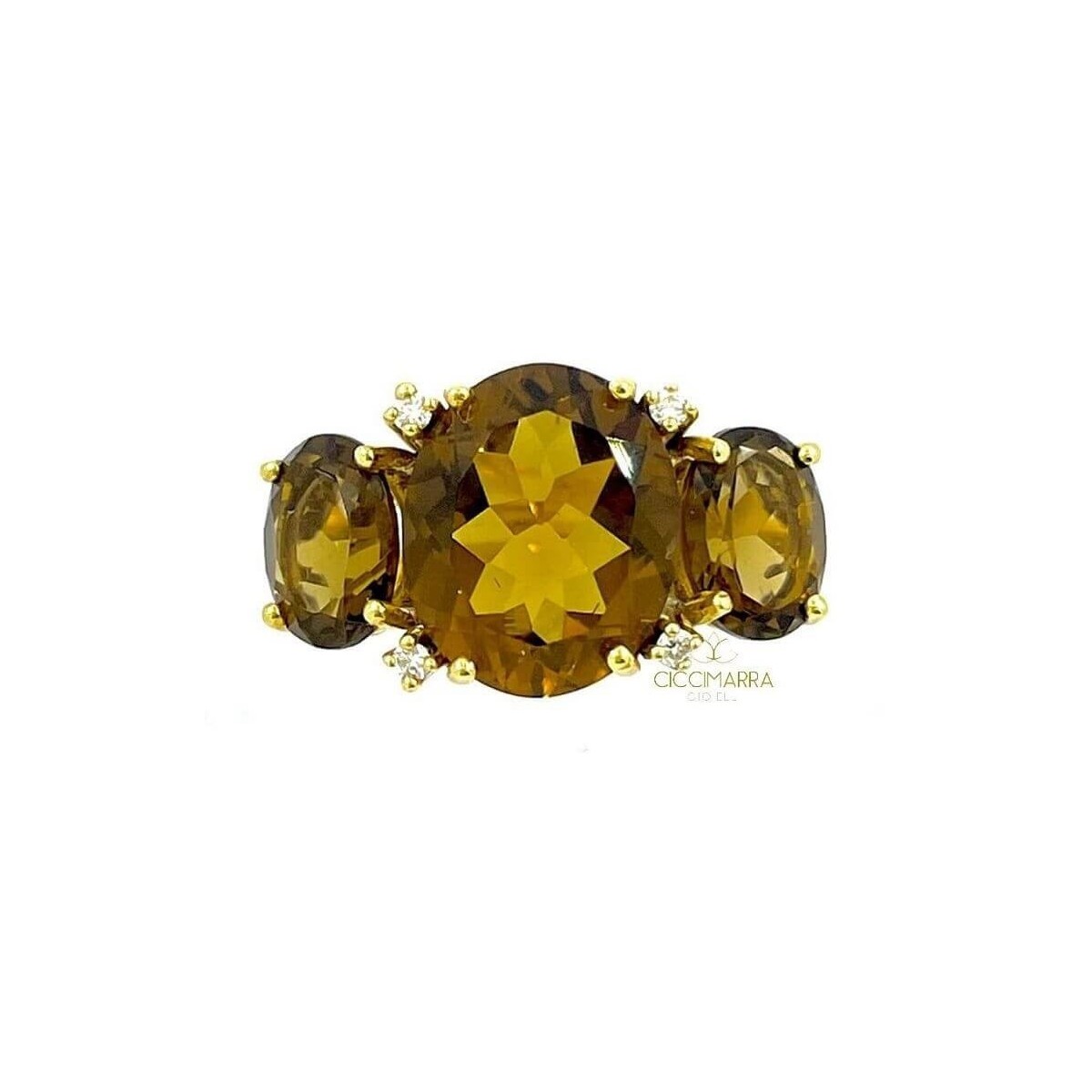 Yellow gold ring with 3 Cognac Quartz and Brilliant Gems, Kiara Gioielli
