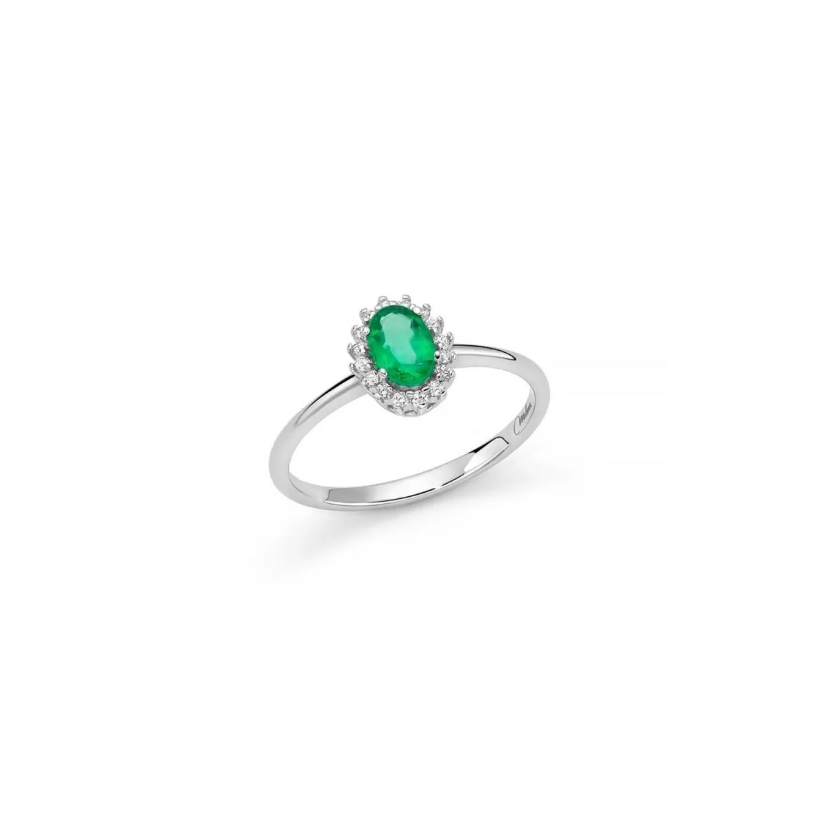 Women's ring, Le Gemme line, in 18kt white gold with natural oval-shaped emerald weighing 0.45 carats and natural brilliant-cut diamonds weighing 0.096ct