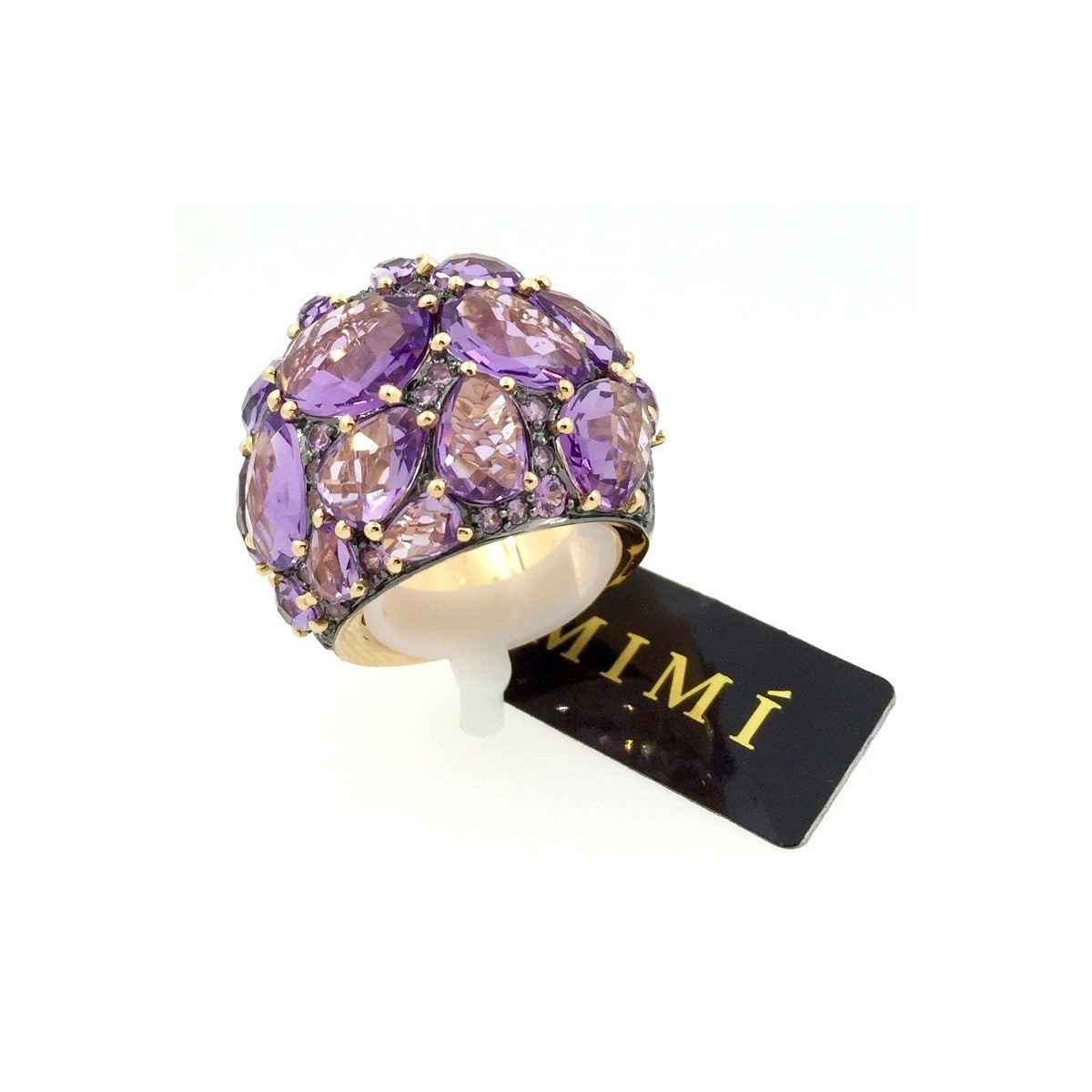Mimi Rose Gold ring, line Cocktailwith Amethyst and purple Sapphires