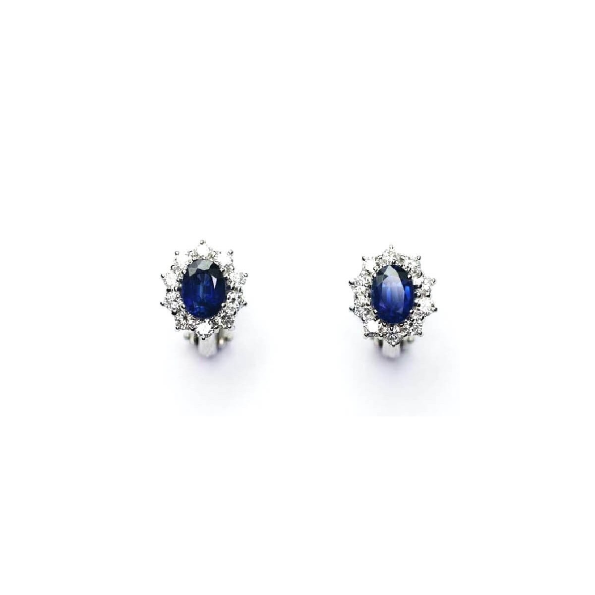 Salvini classic women's earrings from the Love For Colors collection made of 18-karat white gold with 2 natural oval-shaped blue sapphires weighing 2.23 carats in total, embellished with a frame of 10 natural brilliant-cut diamonds per earring for a total of 0.77 carats.