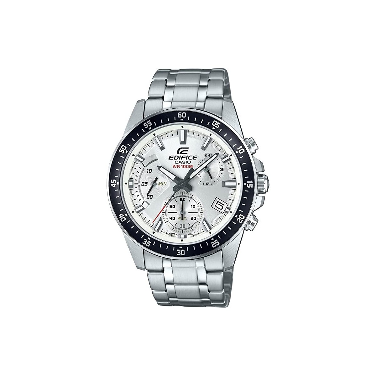 Men's watch, Edifice line, quartz chronograph. Steel link bracelet, 43 mm case and white dial with black bezel, luminescent hands and hour markers.