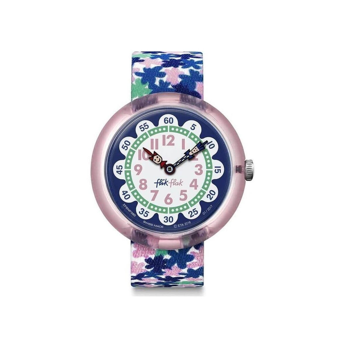 Flik Flak London Flower children's watch with pink and blue flowers FBNP080