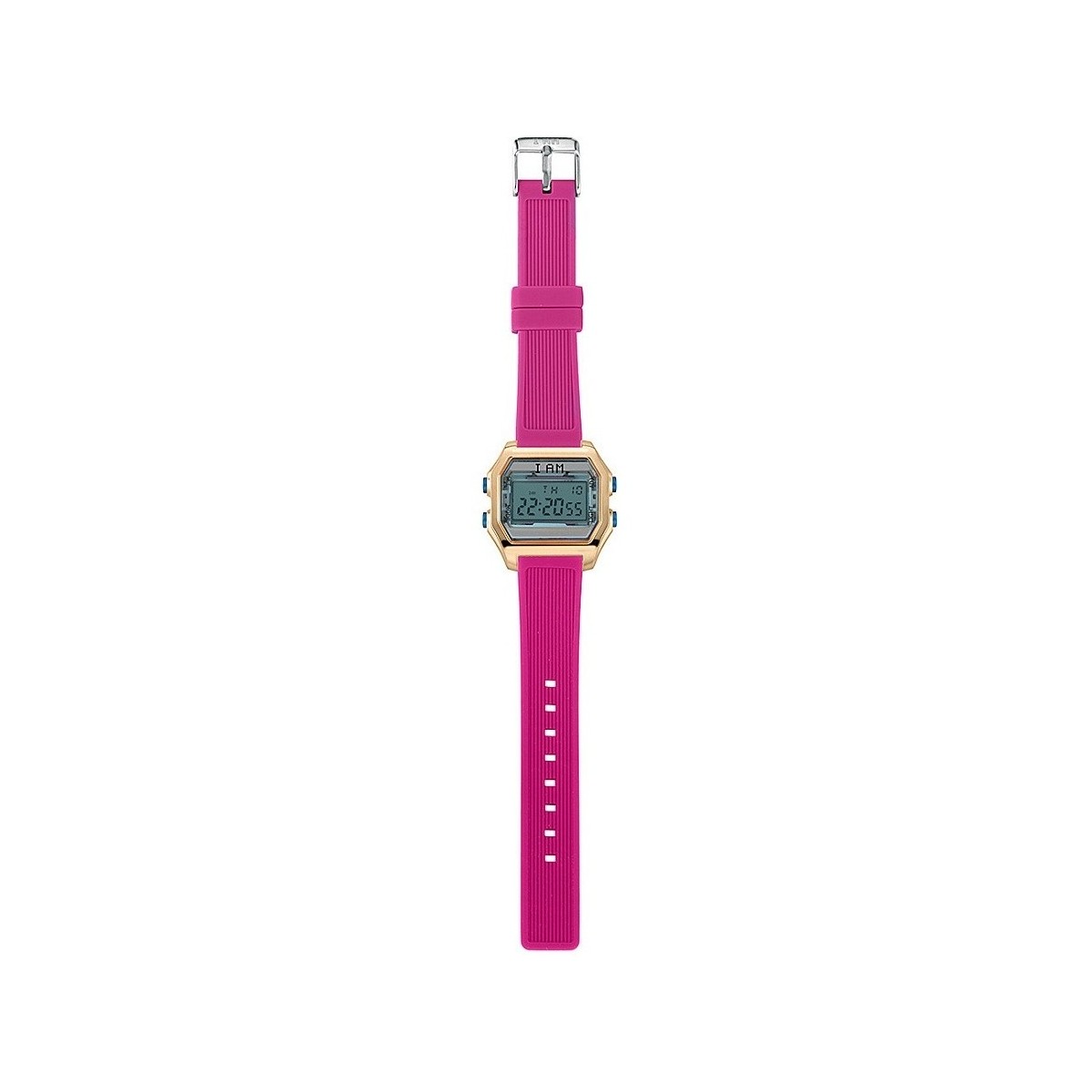 I AM Women's digital watch with polycarbonate case in pink gold color metal with blue glass and fuchsia silicone strap with steel buckle.