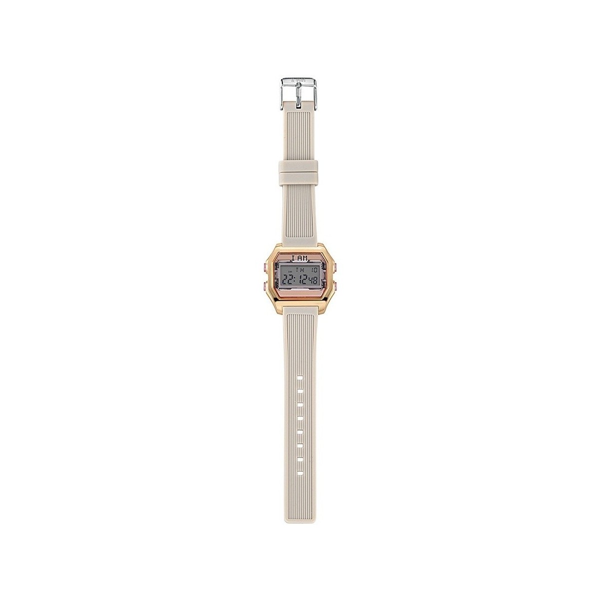 I AM Women's digital watch with polycarbonate case in pink gold color metal with powder pink glass and gray silicone strap with steel buckle.